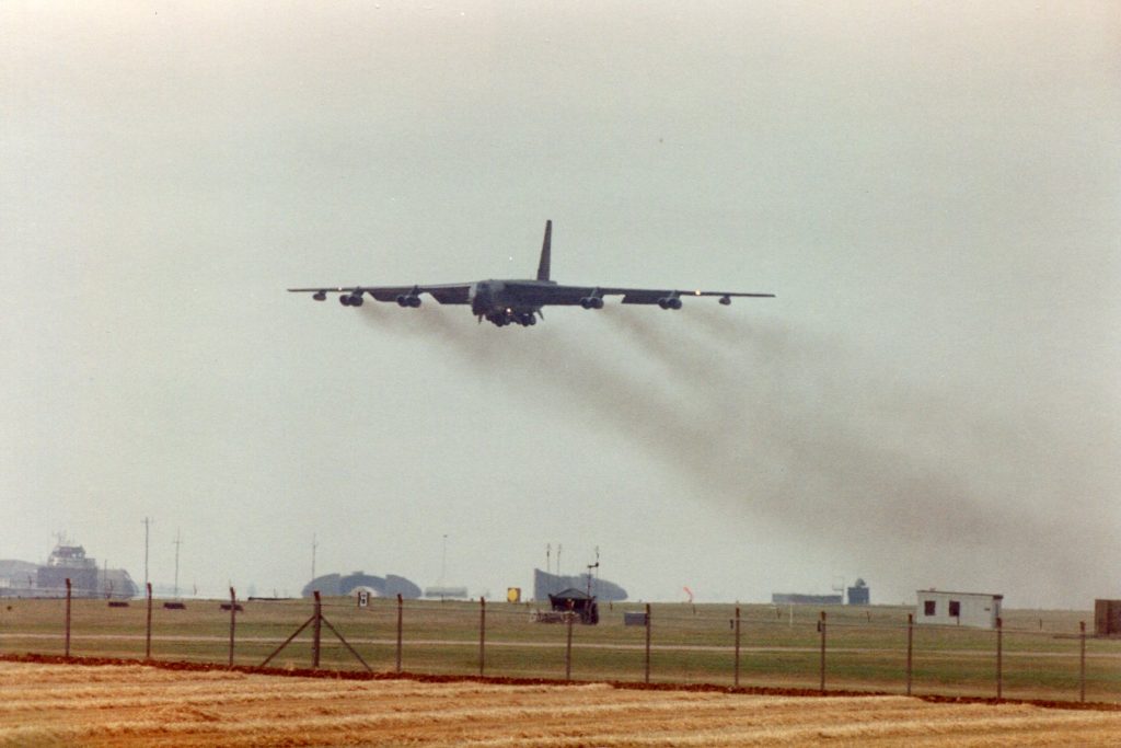 A Bombardment Wing of forty-five bombers, plus a Squadron of tankers for inflight refuelling, flew across the Atlantic to remain in Britain for 90 days. They were accompanied by maintenance crews and some aircraft were always on Alert ready to launch a strike within 15 minutes.